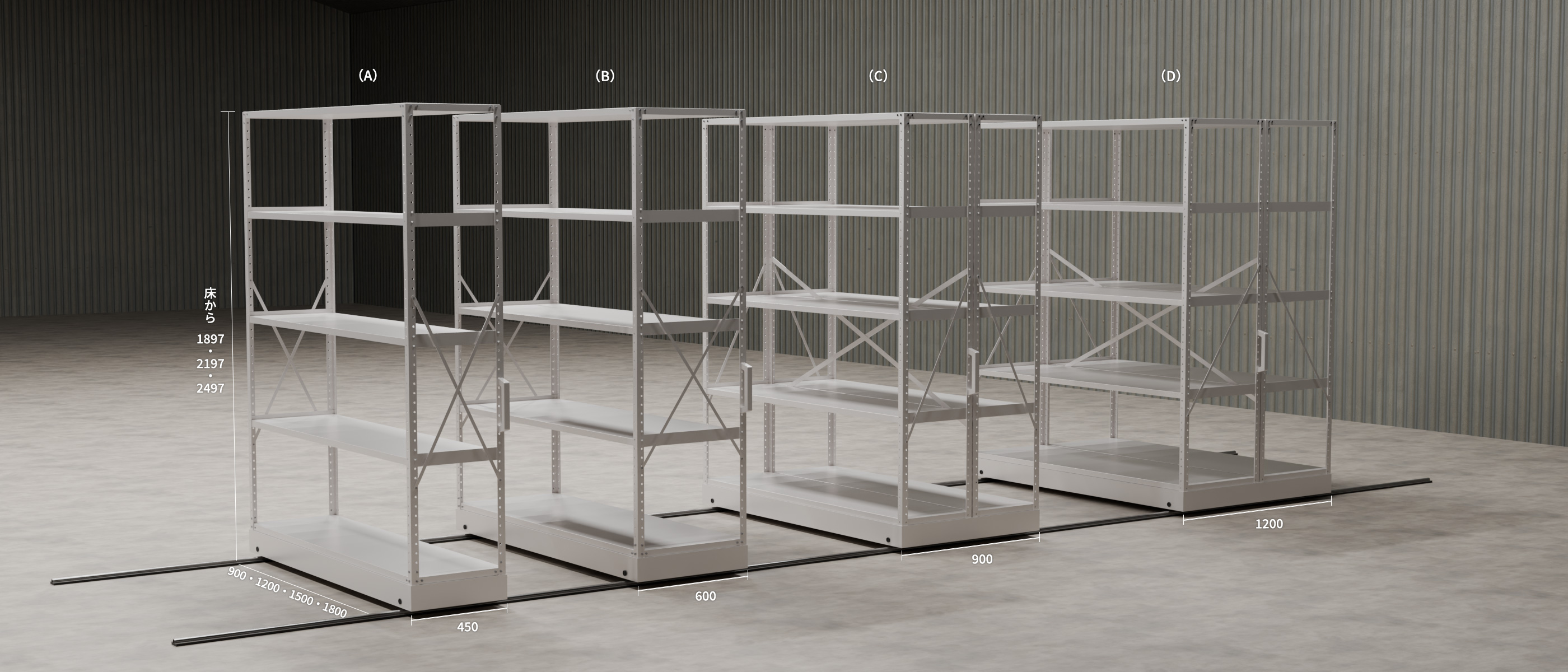 | 間口(mm) | 900・1200・1500・1800 | 900・1200・1500・1800 | 900・1200・1500・1800 | 900・1200・1500・1800 |