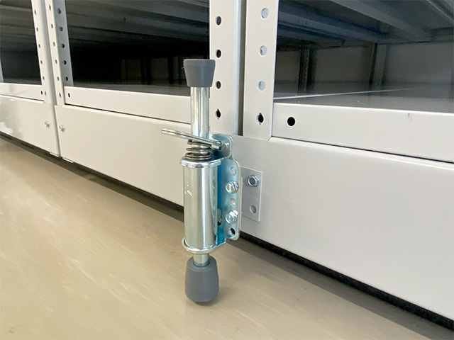 このレール受けは、「サンレール」の奥行き(500mm未満)の場合、「サンレール」の棚自体を転倒から防ぐために必要なレール構造となっております。